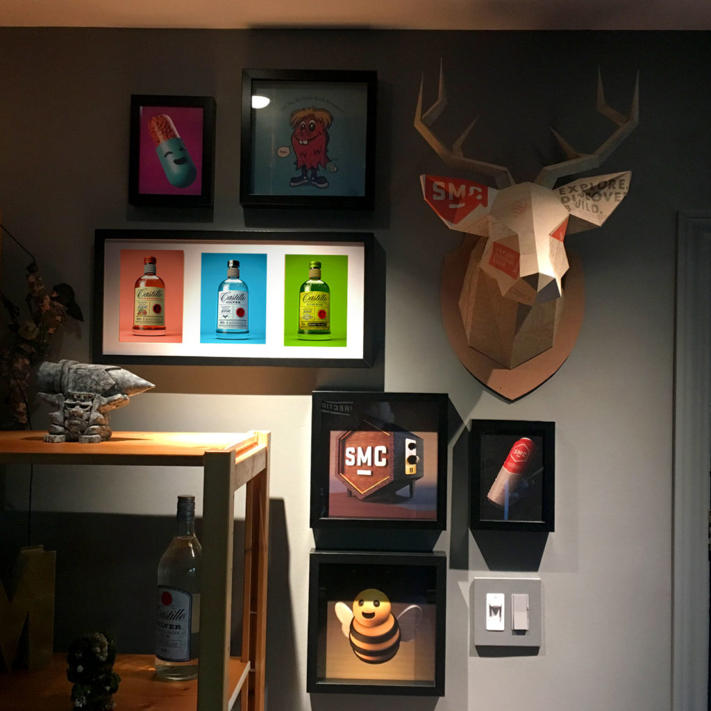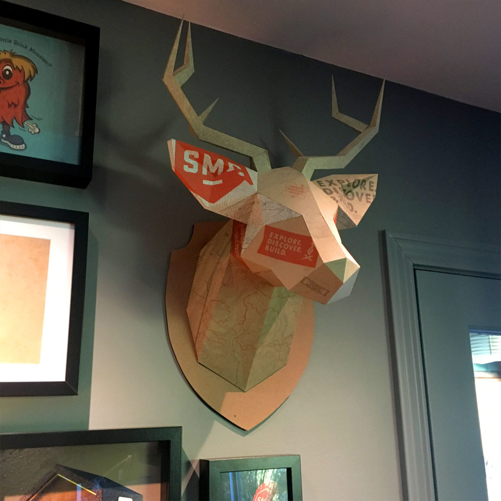 Just like the agency days, keeping the good vibes around the office helps keep the good vibes going, and I found a place for the SMC branded paper sculpture.