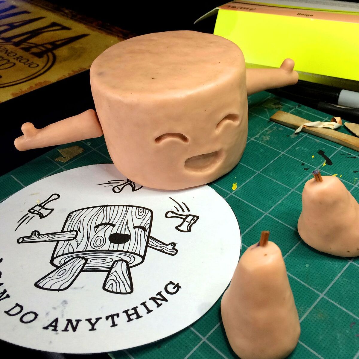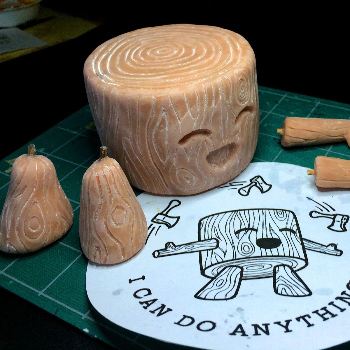 In this phase, you’ll really start to feel like a kid again. It’s like the old school Play-dough days. I started out rough, just adding the basic form and then start to apply the details like the eyes mouth and even cut in the woodgrain. Once the model is ready, you can throw it into the oven to make it solid.