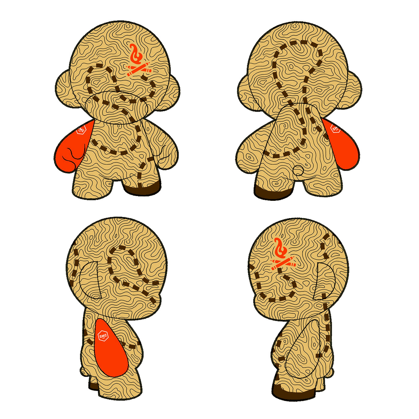 Of course, I had to start with a computer layout. It was nice to explore ideas with the undo button at hand anytime I needed it. A lot easier than repainting. When I started working on this project I had recently finished my branding, so the subject matter just rolled in. It was a blast playing with the SMC brand standards to make the Munny come to life.