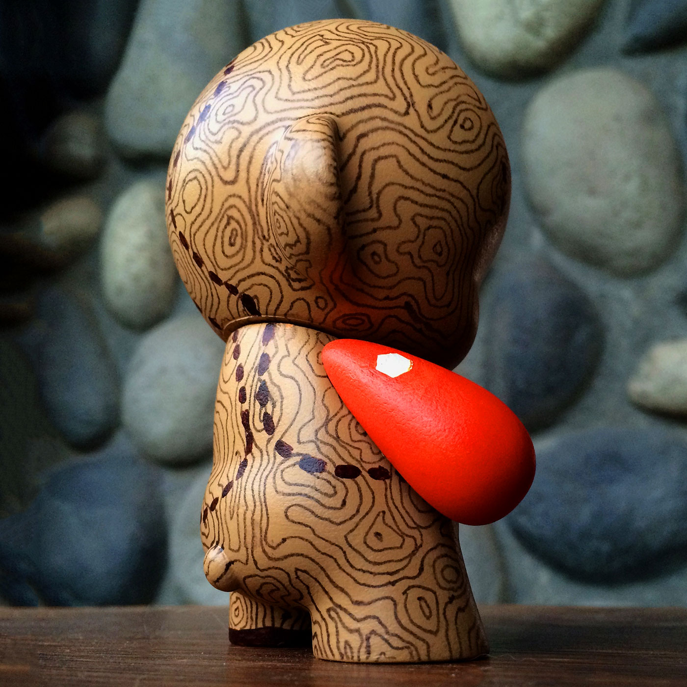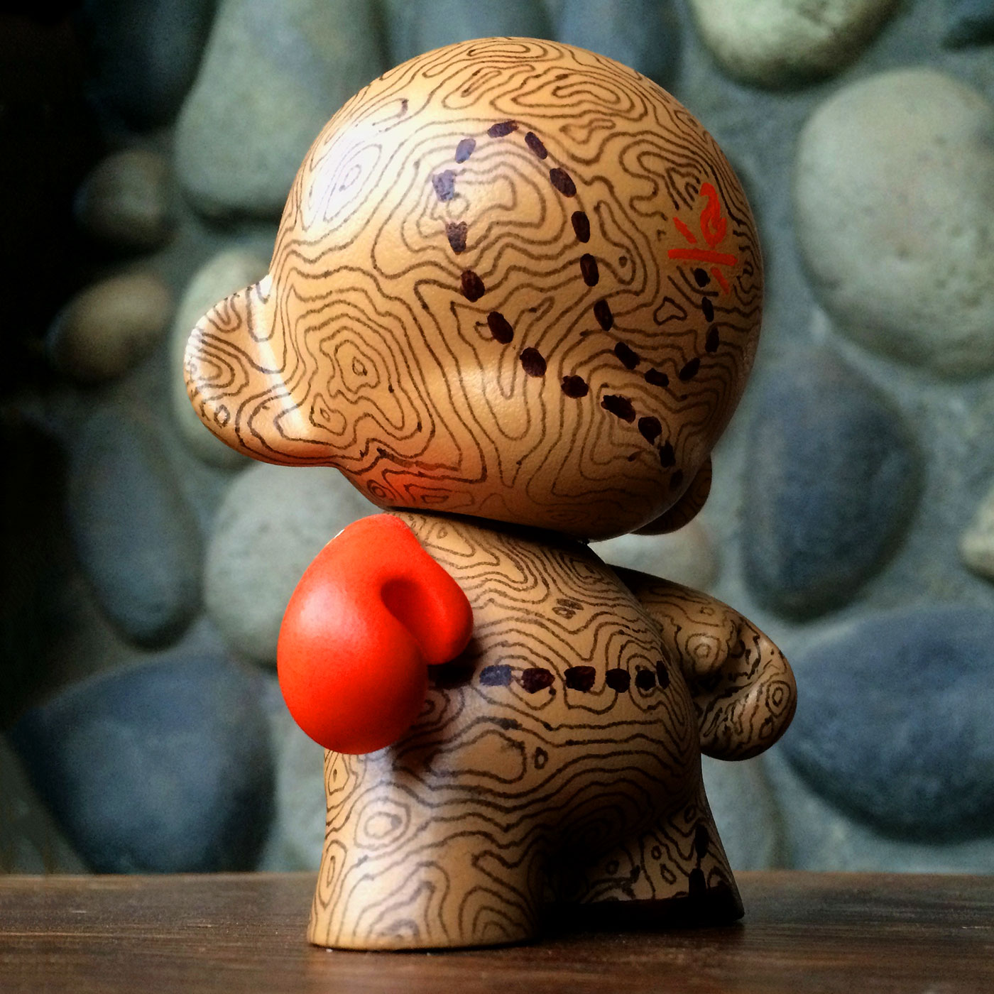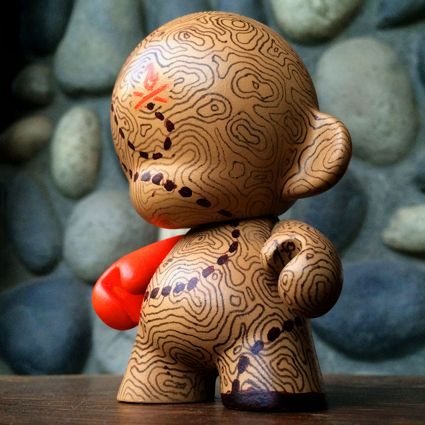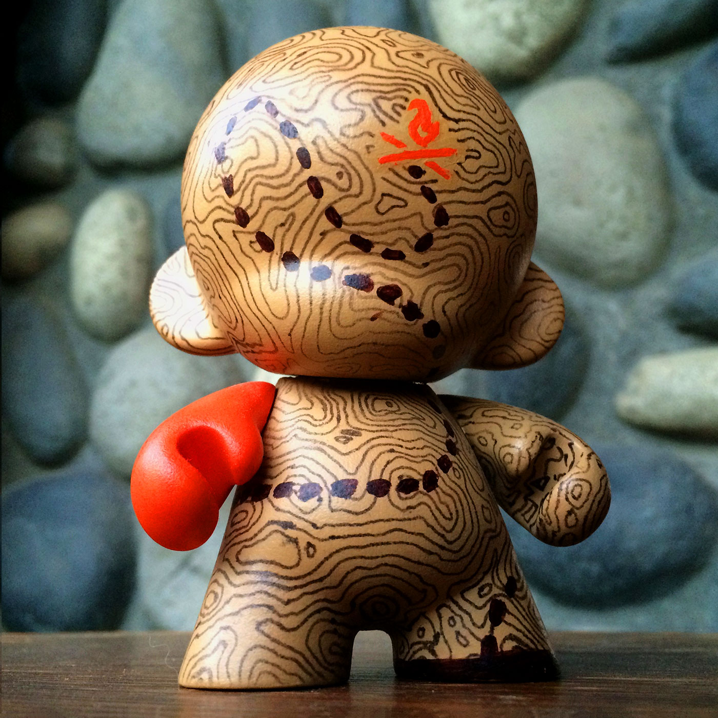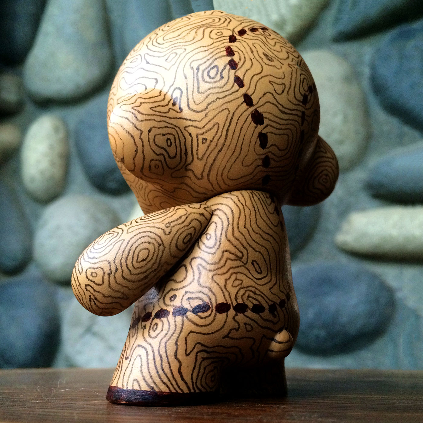 The next Munny I created I decided to go in a more straightforward direction and find a design that could be more organic to fight perfectionism. I always like the topographical maps as a pattern and I use it in my branding quite a bit — but painting it by hand? Oh boy!