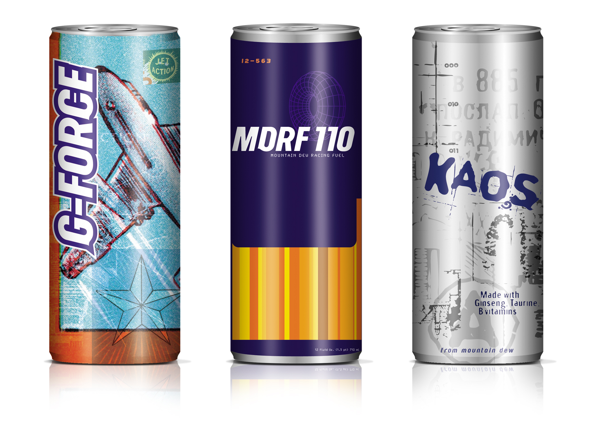 Concept ideas developed for focus group testing of new Mountain Dew Energy Drink.