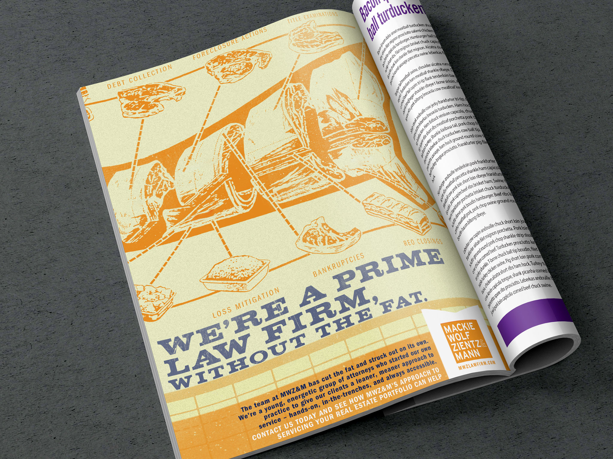Print Advertisement for Mackie, Wolf, Zientz & Mann Law Firm. The law firm’s main focus is Debt Collection and Bankruptcies law.