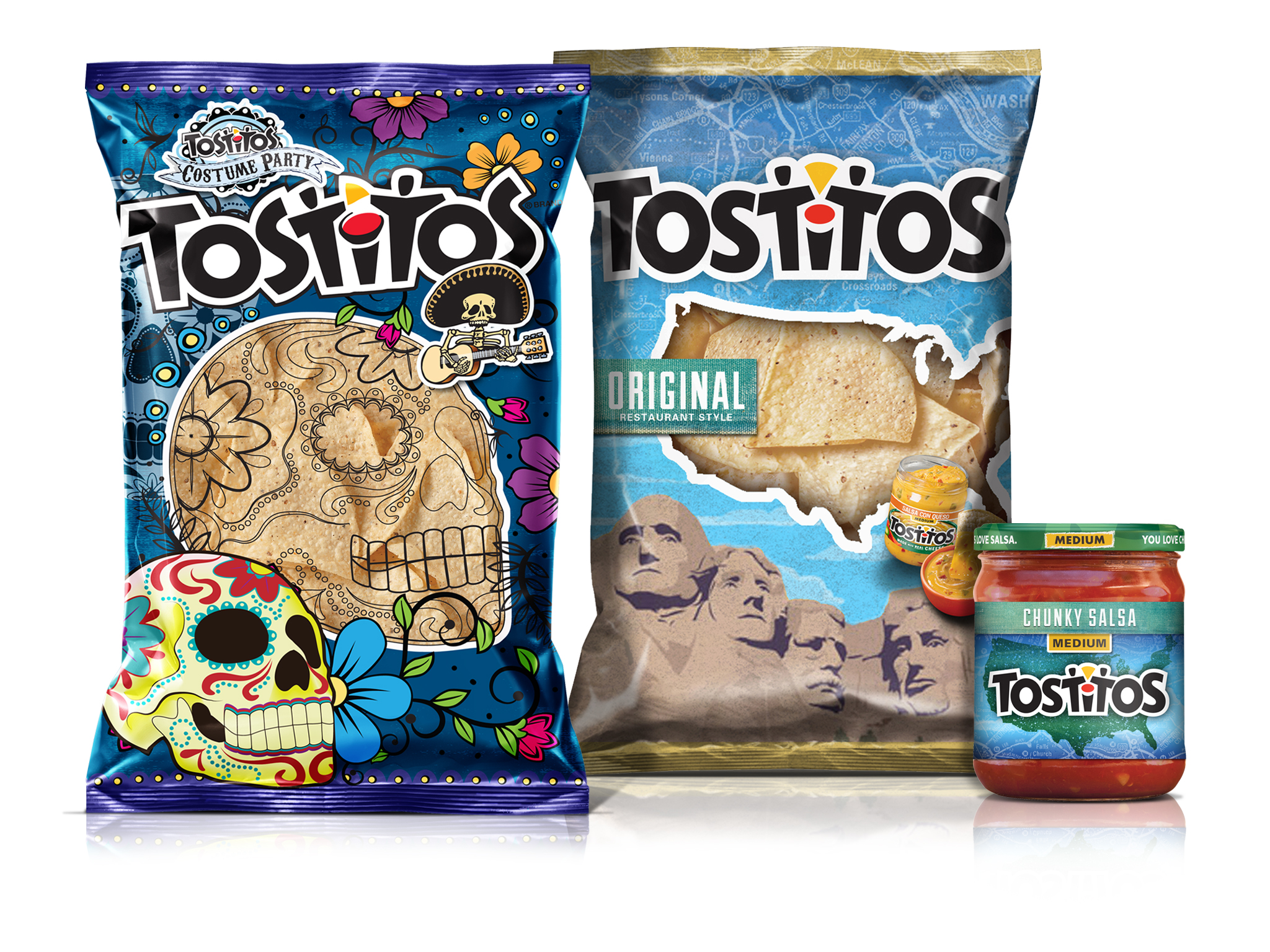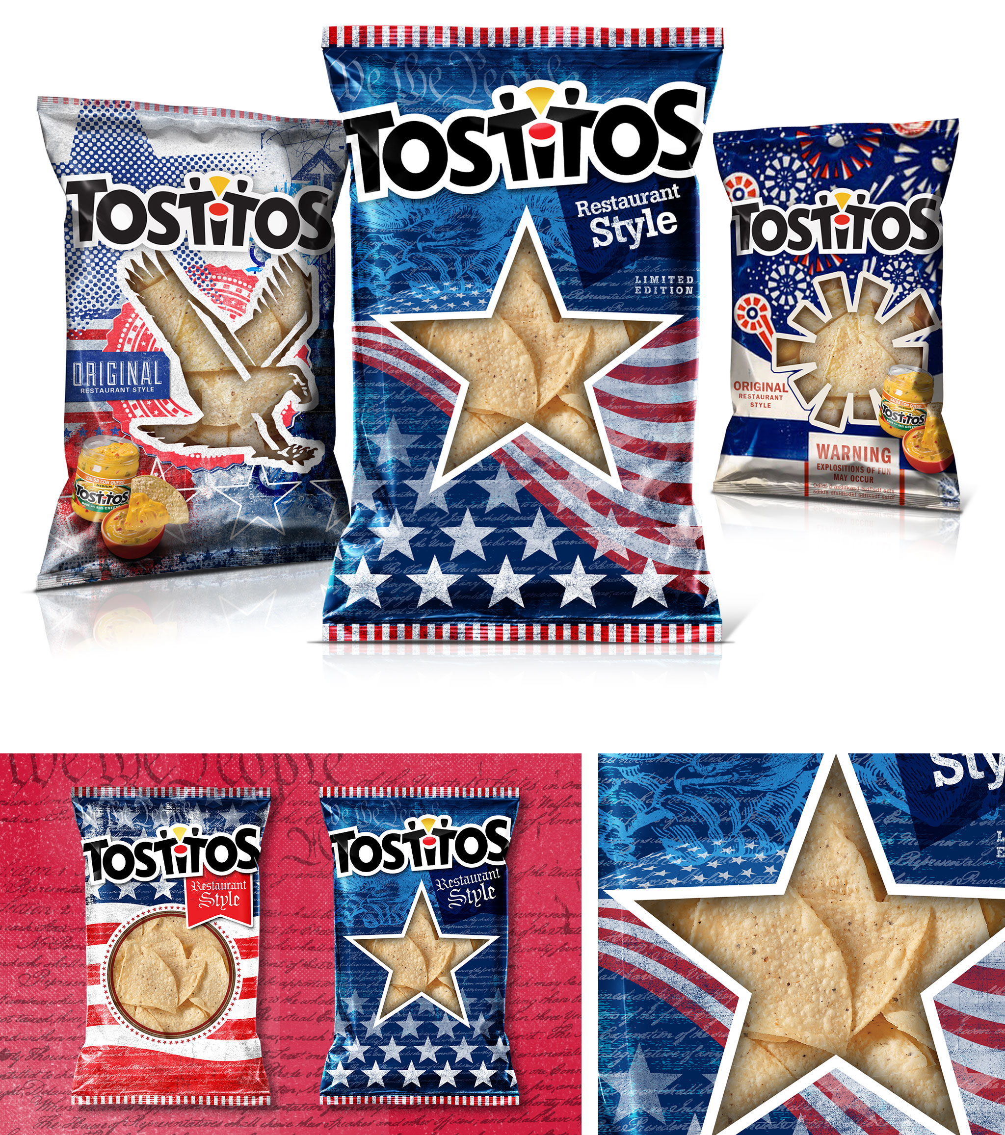 Concept packaging designs for Tostitos Promotional Chip Bags. Holidays included Fourth of July and Day of the Dead.